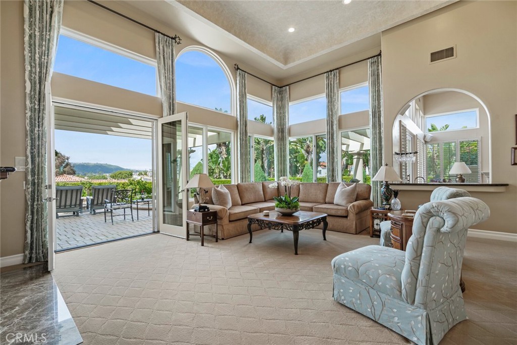 SINGLE LEVEL LUXURY LIVING! Indulge in the best of coastal living with this exceptional single-story home in the highly sought-after Estates at Monarch Beach. Meticulously maintained with pride of ownership, 4 bedrooms, 3.5 bathrooms, and an office off the entry, this thoughtfully designed residence seamlessly combines luxury, functionality, and comfort. Positioned on a prime single-loaded, cul-de-sac street, privacy and exclusivity are key, complemented by ocean views and cool breezes. With over 4,000 square feet, this custom-built home welcomes you with a private, grand entry featuring soaring ceilings and an abundance of light, creating an open and tranquil atmosphere. The formal dining room, overlooking the elegant living area surrounded by floor-to-ceiling glass windows, exudes elegance and style. The open kitchen and oversized pantry feature top-of-the-line appliances with a double Sub-Zero refrigerator, freezer, and an expansive island perfect for entertaining. Seamlessly connected to the kitchen, the great room showcases a thoughtfully designed built-in bar and wine fridge, flowing to the outside entertaining spaces and backyard sanctuary, complete with a sparkling pool, spa, and fire pit, offering sunsets and refreshing ocean breezes year-round. The primary bedroom with voluminous ceilings and ample natural light, opens to sumptuous, spa bath with dual vanities and a soaking tub. All guest bedrooms are spacious with ensuites. The 3.5-car garage, inside laundry and an expansive driveway offer ample space for parking and storage. This coastal villa offers a resort lifestyle with all that Dana Point has to offer. Residents of the Estates at Monarch Beach enjoy 24-hour guard gated security, surrounded by the award-winning Monarch Beach Golf Links and trails with close proximity to shopping, dining, top tier golf, world-class beaches and 5-star resorts at the Ritz Carlton and Waldorf Astoria, not to mention the Dana Point Harbor with a $400 million renovation underway. Experience coastal living from this world-class location.